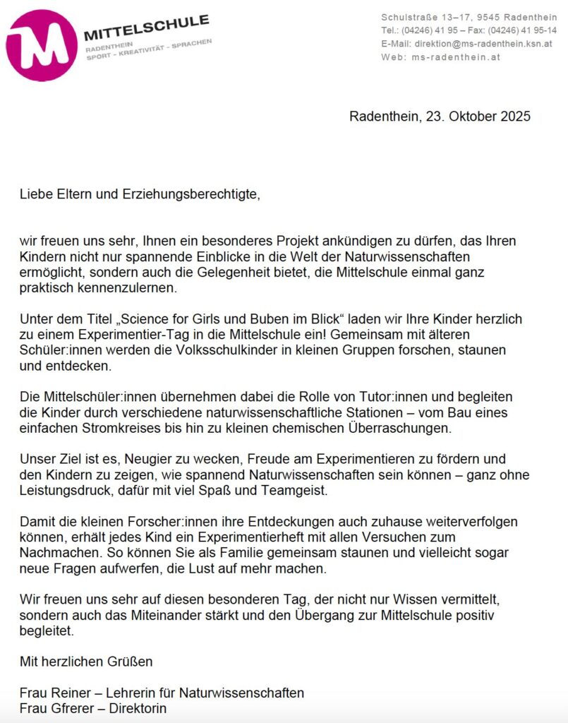 Startseite > Aktuelles > Schuljahr 2025/26 > Science for Girls und Buben im Blick